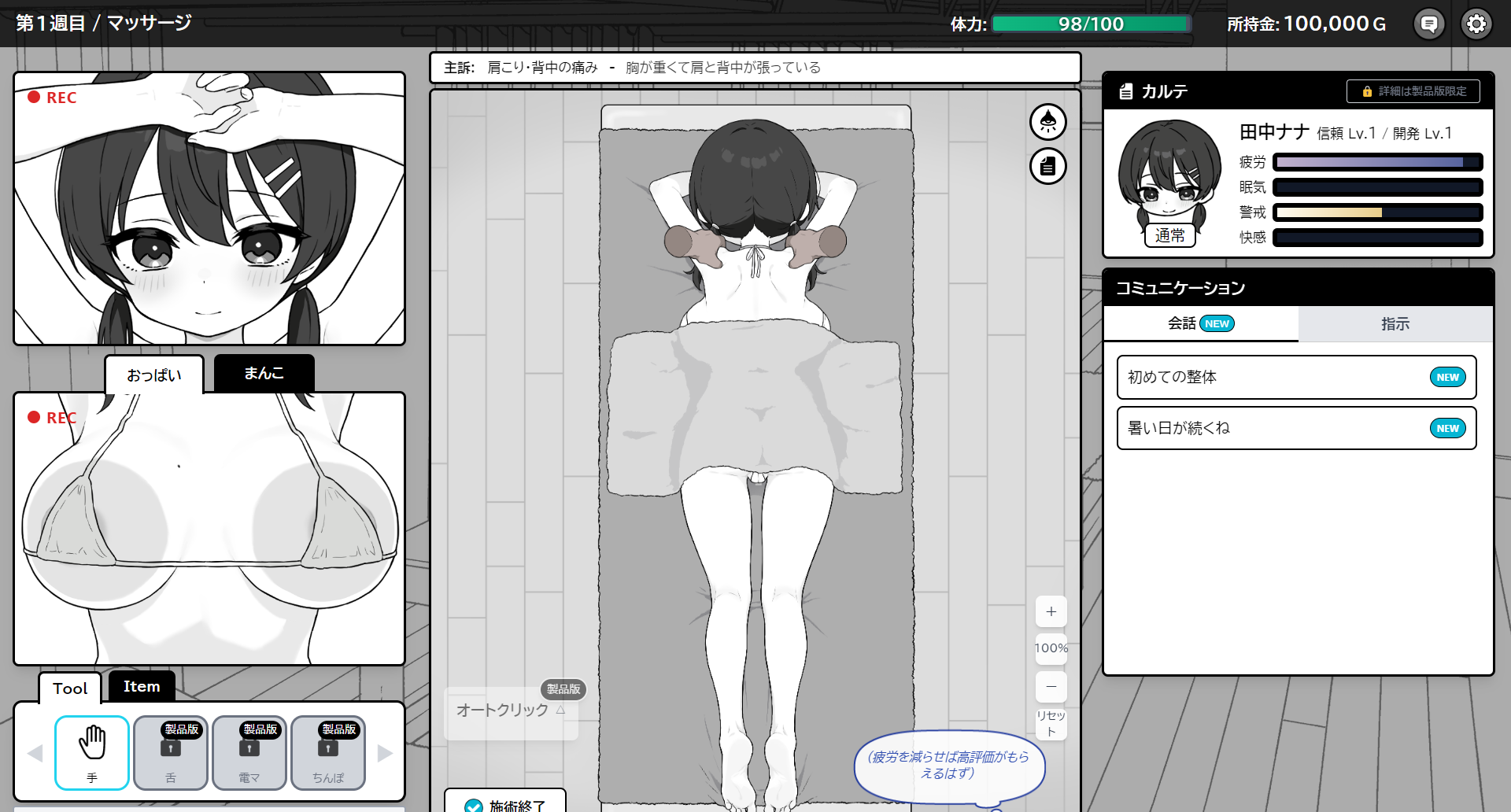 整体院を訪れた巨乳美少女「田中ナナちゃん」に、最初は普通のマッサージから始めて、徐々に過激な施術へ…