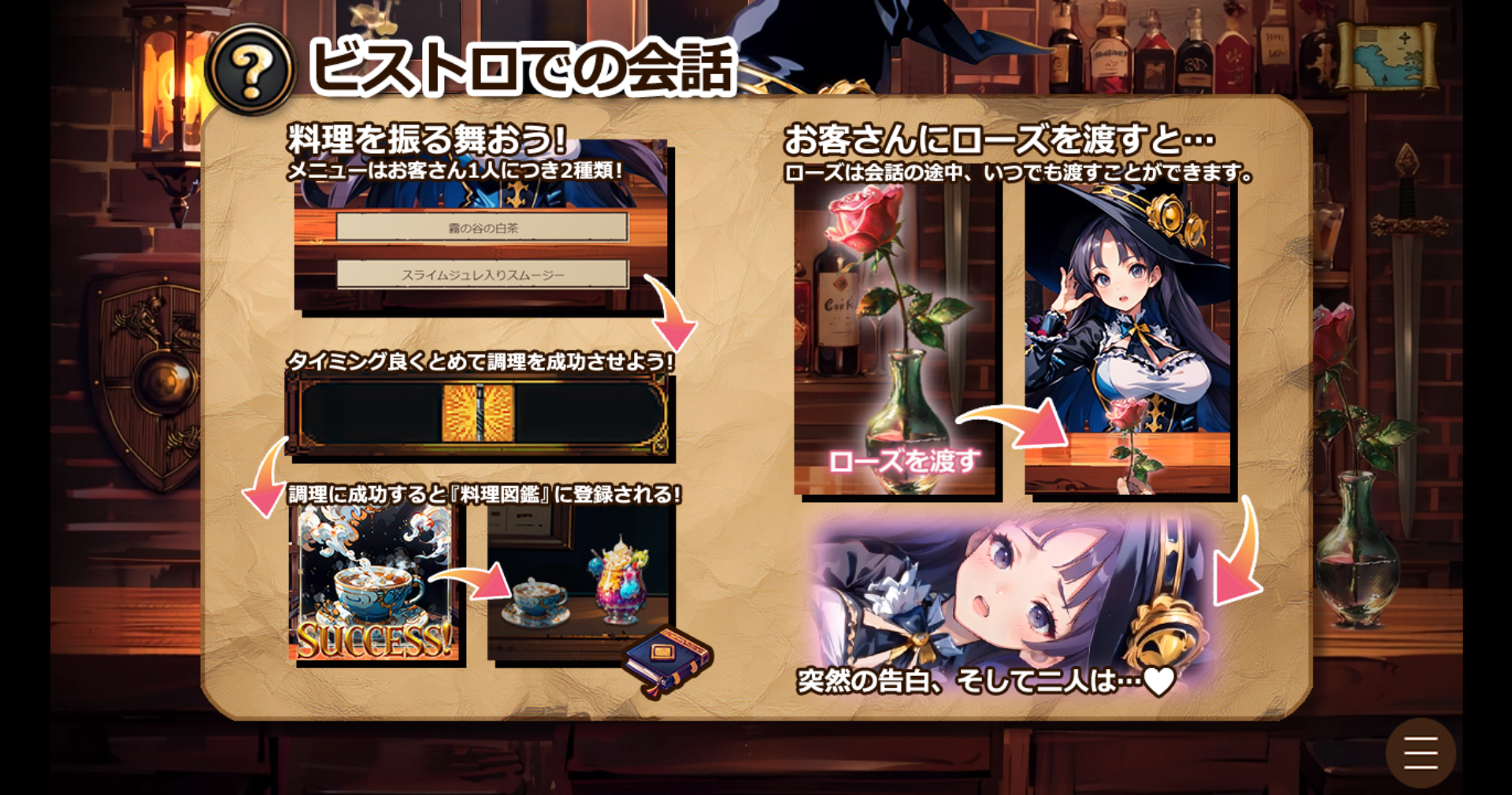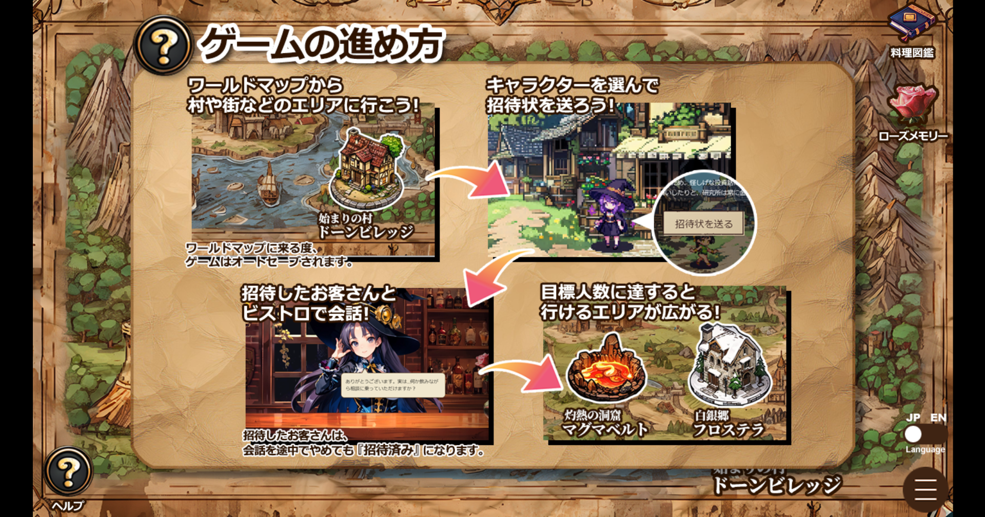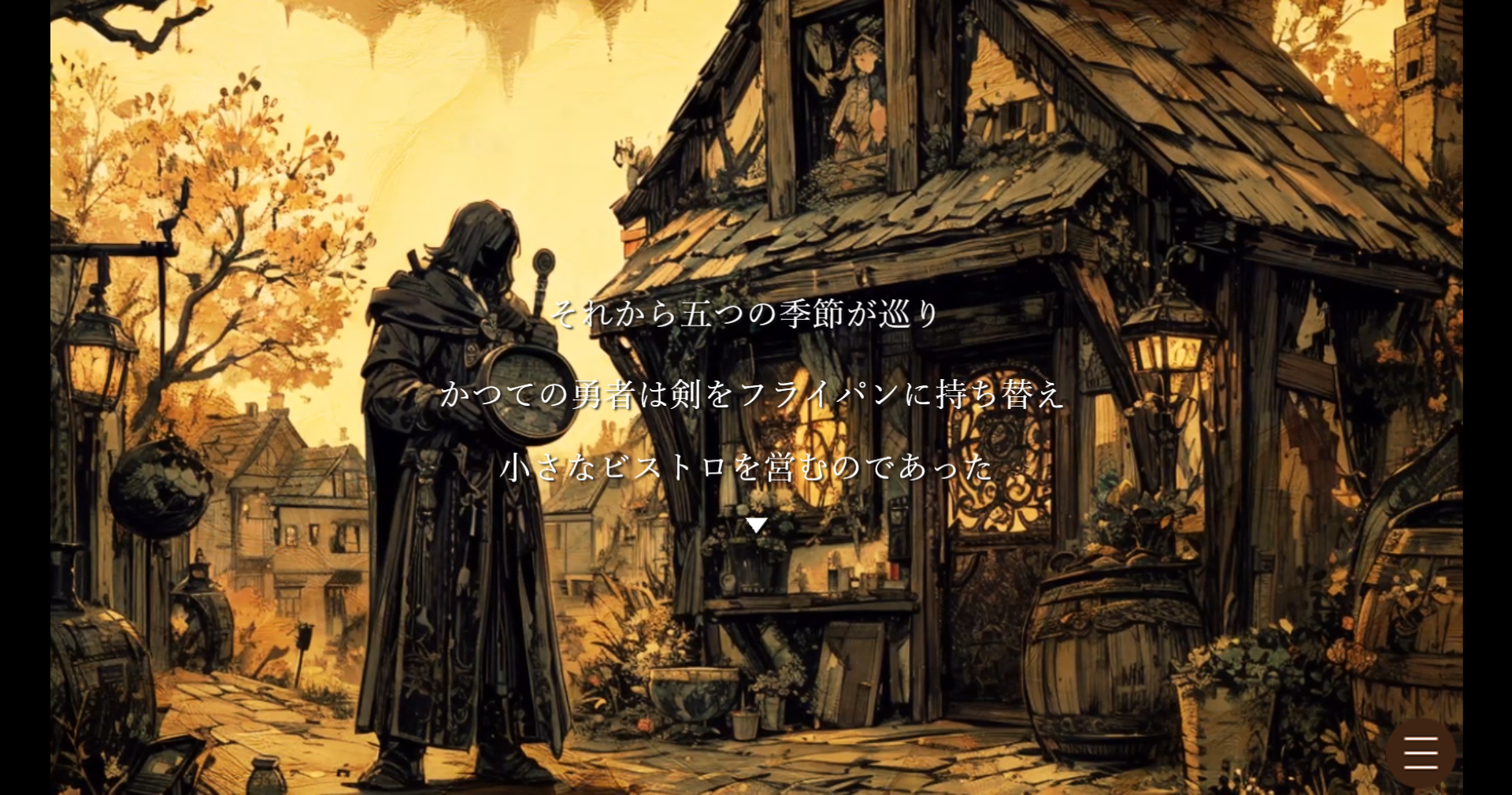 魔王を倒した勇者がビストロを開店し、かつの仲間を招待しようというところからスタートです。