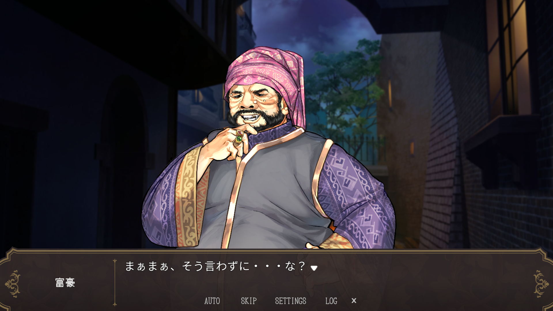 店の外で奴隷のサキュバスと富豪が居た所からスタート。