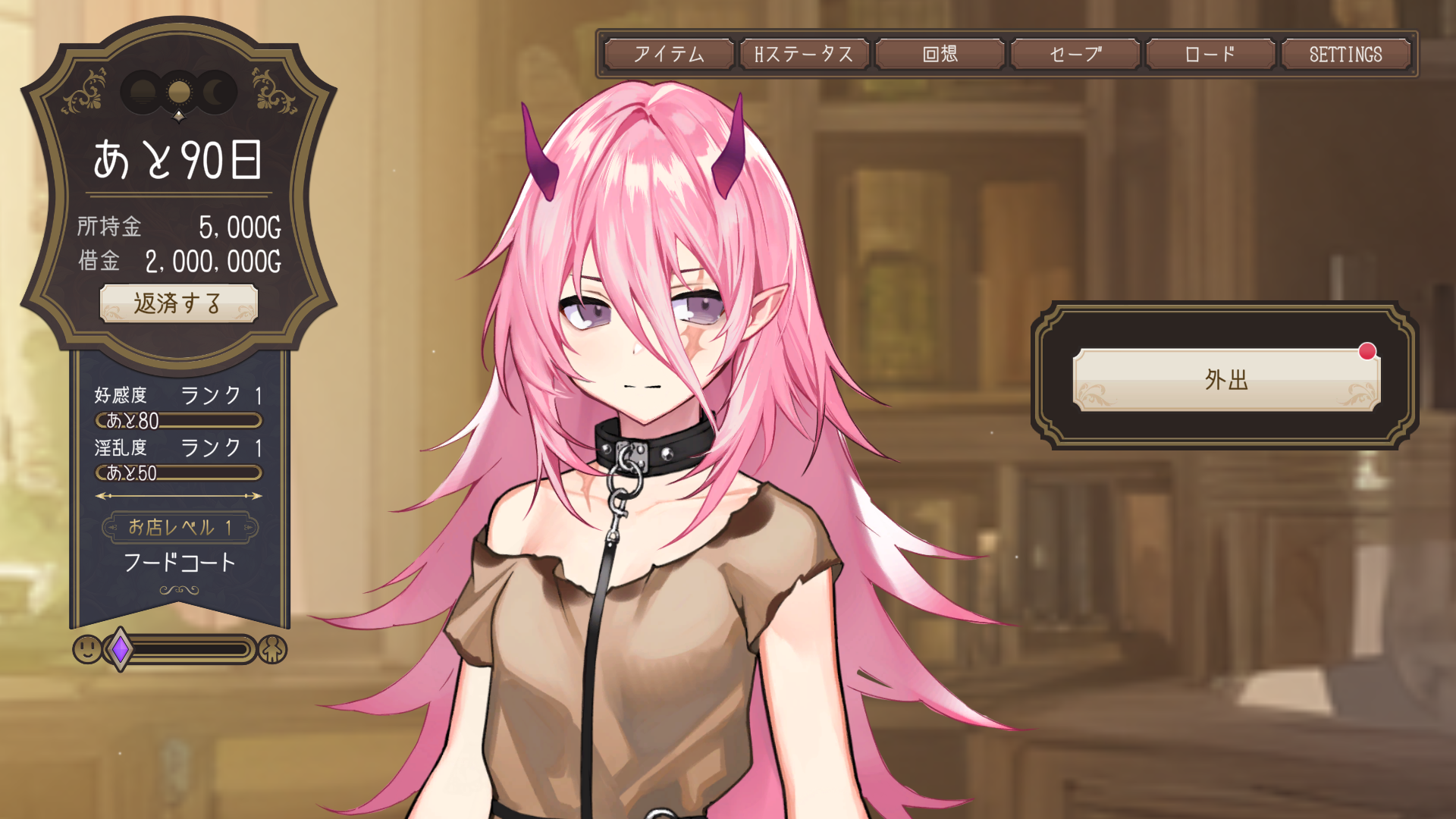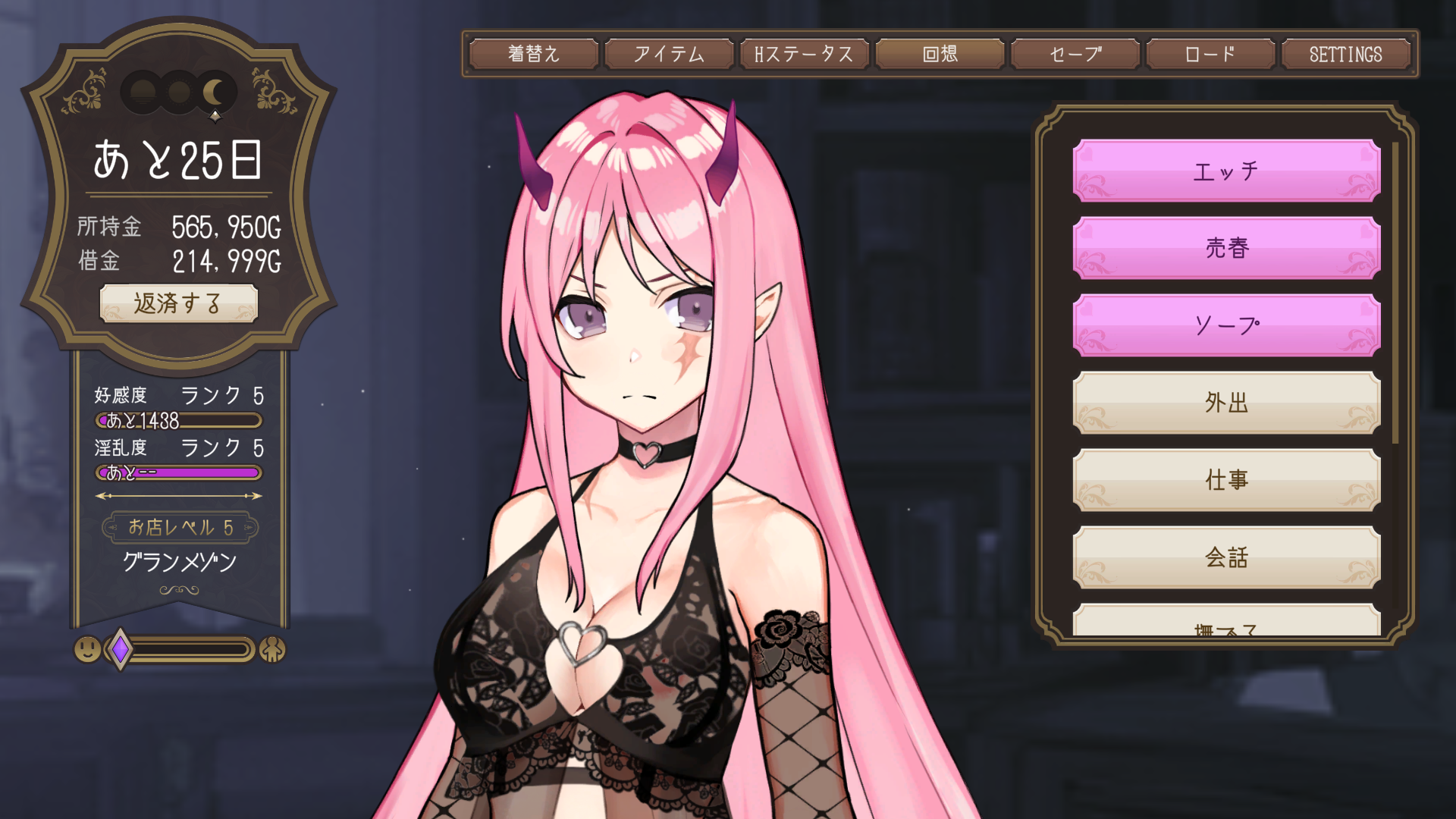 お店経営部分をもっと詳細に作って、30日毎の期間返済、達成出来なければ娼婦のお仕事で補填、未達回数でエンディング分岐くらいで良かったかもしれません。