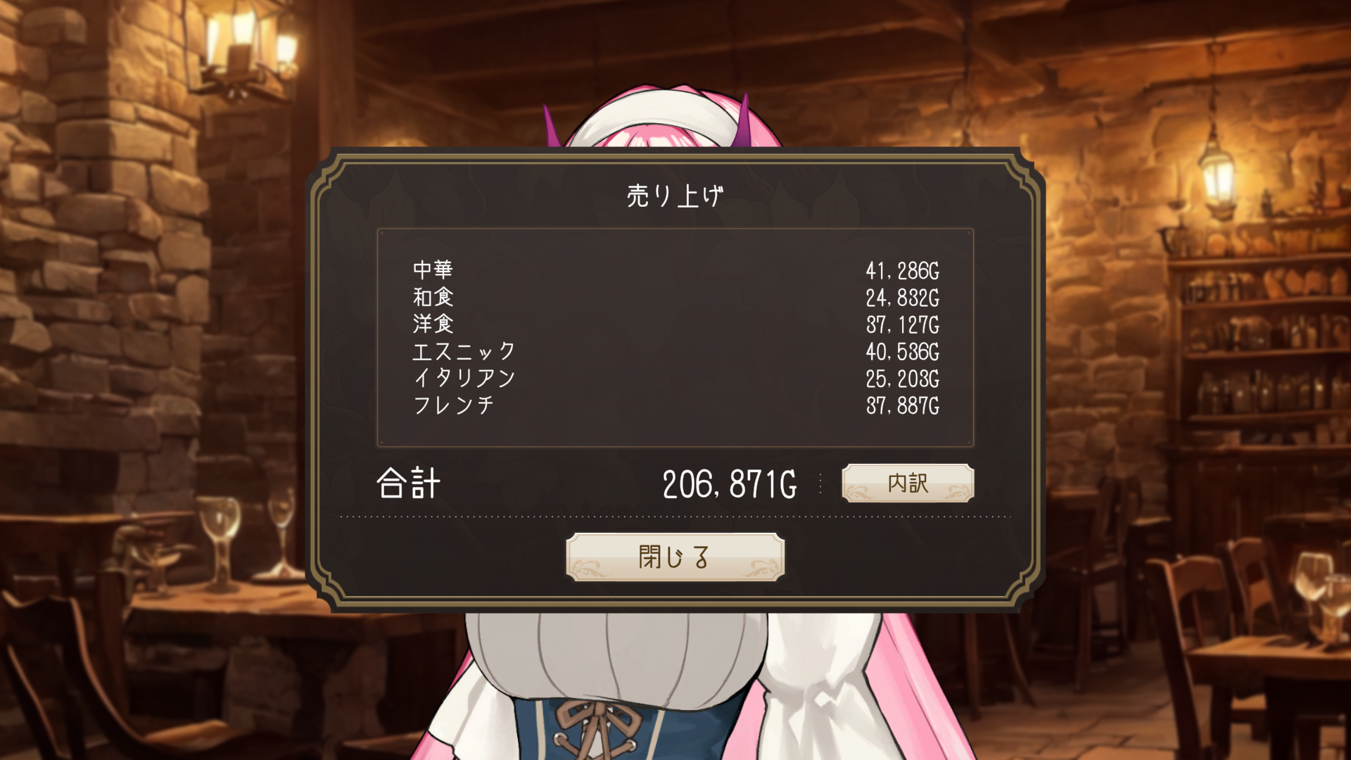 お店経営やレシピ開発をもっと拘るか、某レジェント奴隷との生活ゲーみたいにコミュニケーションをもっと細分化しても良かったかもしれません。